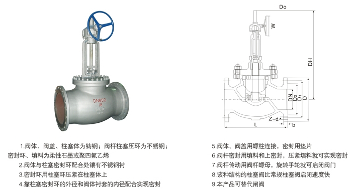 截止閥形柱塞閥(活塞閥)主要外形尺寸和連接尺寸 :