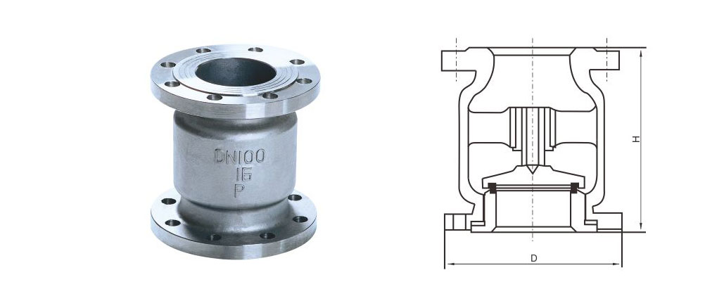 立式止回閥嚴格按 GB12235 標準設計制造,閥瓣沿著中心定位作升降運動 , 襯套采用耐磨性能好,摩擦系數(shù)小的特殊材料制作,動作靈活可靠 . 密封性能優(yōu)良。產品廣泛應用于石油、化工、制藥、電力行業(yè)等各種工況的管路上。