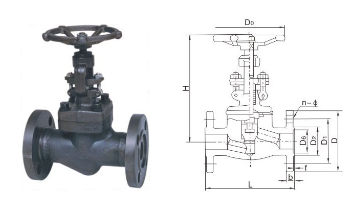 鍛鋼法蘭截止閥尺寸(MM)和重量(KG)